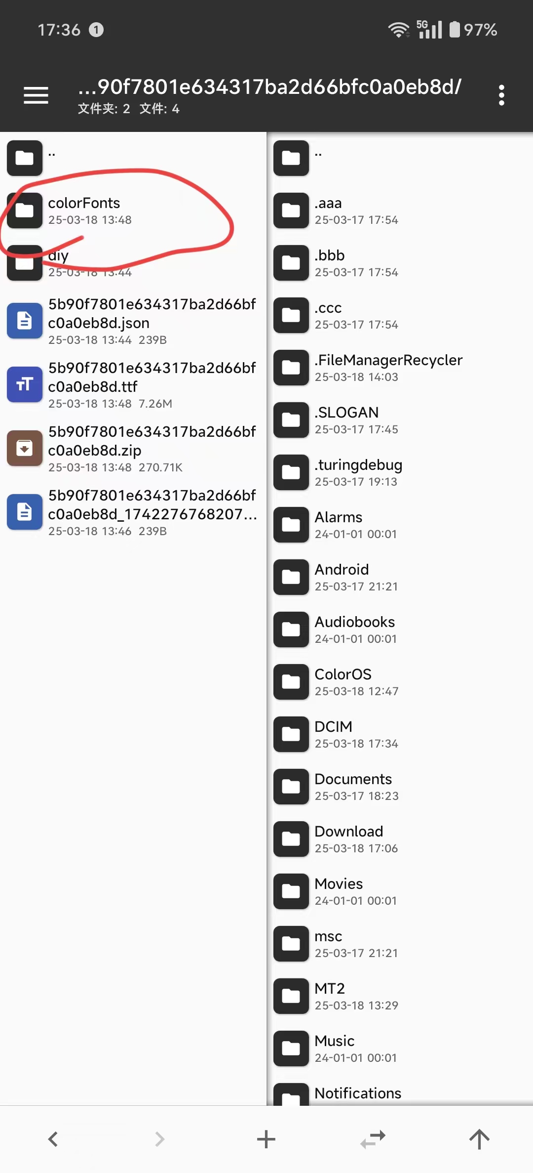 - 然后在MT管理器右边找到你下载到的字体文件,然后把左边的字体文件名称复制粘贴给你下载的字体文件名称,然后并把右边改好名称的字体文件复制到左边进行覆盖